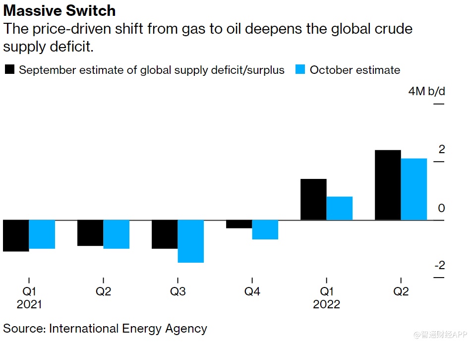 智通财经APP获悉,周四,国际能源署(IEA)表示,欧洲和亚洲的天然气短缺正在推动对石油的需求,加剧了原油市场已经存在的相当大的供应赤字。