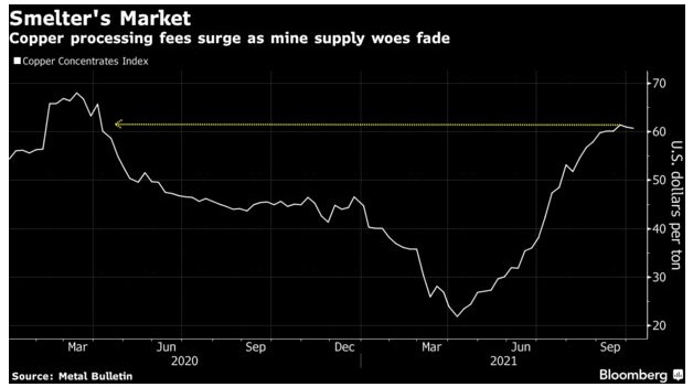 铜和锌期货的最新涨势是在全球能源危机开始影响冶炼厂之后出现的,这对精炼金属价格来说是个好消息,但许多矿商依赖冶炼厂来加工从地下开采的矿石,这表明目前已处于疫情初期以来最高水平的冶炼和精炼费用将进一步上涨。