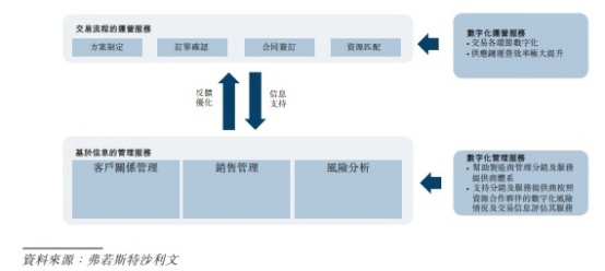 面对激烈竞争,制造商有强烈意愿扁平化其经销系统以改善营运及成本效益,这对管理众多经销服务商构成挑战。针对以上挑战,数字化供应链服务应运而生,其包括基于流程的运营服务及基于信息的运营服务。
