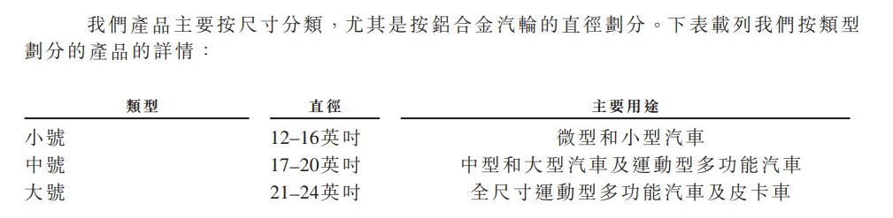 弗若斯特沙利文表示,全球铝合金汽轮的增长主要由新车产量以及配备铝合金汽轮的汽车比例所推动。铝合金汽轮广泛应用于轿车及SUV等乘用车,中档或高档乘用车均配备铝合金汽轮。同时,其预计未来全球约80%的新汽车将要配备铝合金汽轮。此外,汽车改装以及定制化的兴起也将推动铝合金汽轮的需求。