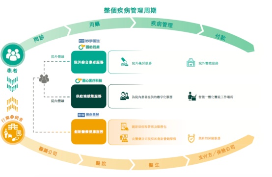 公司三大业务包含院外综合患者服务、供给端赋能服务及创新医疗健康服务。