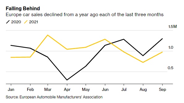 在连续三个月销量下滑之后,欧洲的销售额下滑的时间超过了今年的增长时间。ACEA曾于今年初预计,2021年将标志着复苏之路的第一步,与2020年相比,销售额将增长约10%。因此对该协会和一些表达了相同看法的市场研究员来说,最近的下滑是始料未及的。