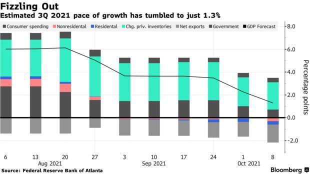 智通财经APP获悉,亚特兰大联储对经济活动的实时预测显示,美国第三季度经济仅增长1.3%,远低于两个月前预测的6%。