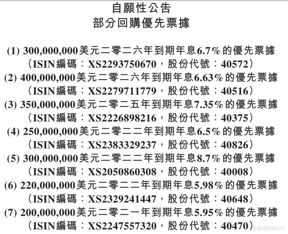 同时,董事会在该公告中表示,将继续监察市场状况及公司财务结构,并可能在适当的时候进一步回购优先票据,且将酌情考虑是否会注销回购的票据。