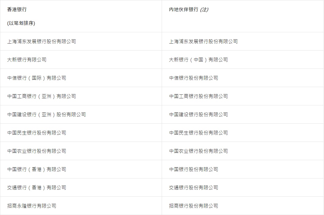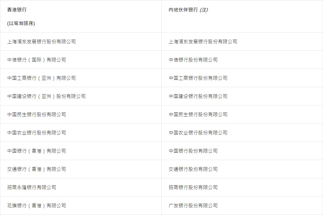 金管局公布可开展跨境理财通业务试点的香港银行名单