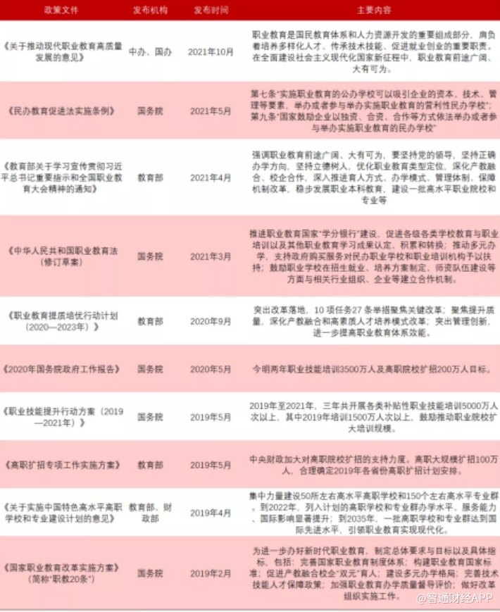 职业教育为什么值得投资,不仅仅在于此次意见带来的推动性作用,而在于从2019年至今,政策持续扶持职教所带来的行业发展趋势。
