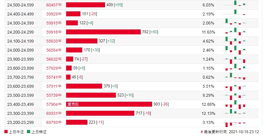 牛证街货重货区在23,400-23,499区间,该区间最新牛证数量为903张,减少26张;最多新增在24,800-24,899区间,该区间最新牛证数量为565张,增加425张。