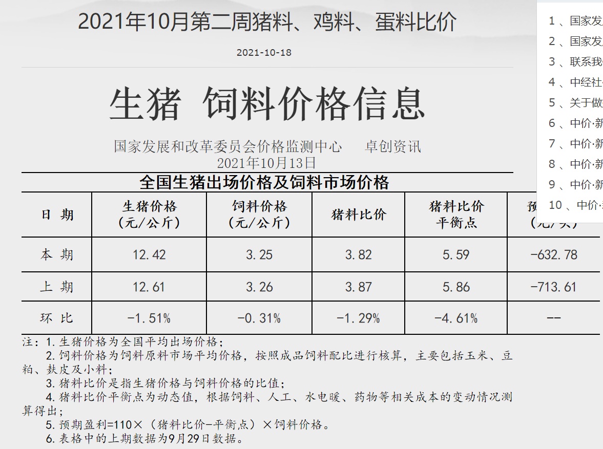 智通财经APP获悉,据发改委价格监测中心10月18日消息,截至10月13日当周,全国猪料比价为3.82,环比跌幅1.29%。按目前价格及成本推算,未来生猪养殖头均亏损为632.78元。当周国内猪价触底反弹,但均价略低于节前。随着天气转冷,部分地区终端消费回暖,屠企开工率上升明显,对行情起到一定提振作用,周初猪价强势走高。因猪价涨速较快,屠企压价意向转浓,预计后期猪价存触顶回落可能。