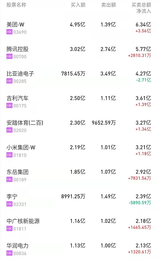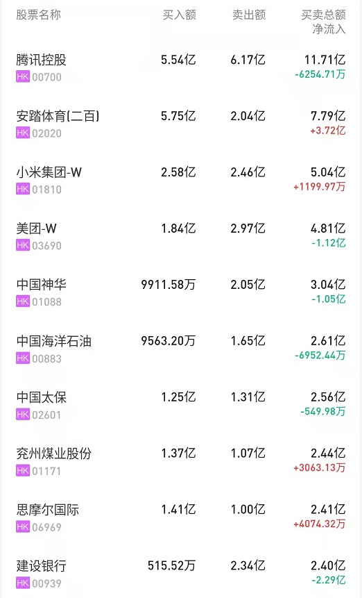 港股通(深)十大活跃成交股