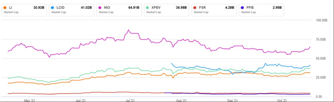 纯电动车股包括菲斯克(FSR.US)、法拉第未来(FFIE.US)、Lordstown Motors (RIDE.US)、Nikola(NKLA.US)、Lucid Motors (LCID.US)、蔚来(NIO.US)、小鹏汽车(XPEV.US)、理想汽车(LI.US)和卡努(GOEV.US)。