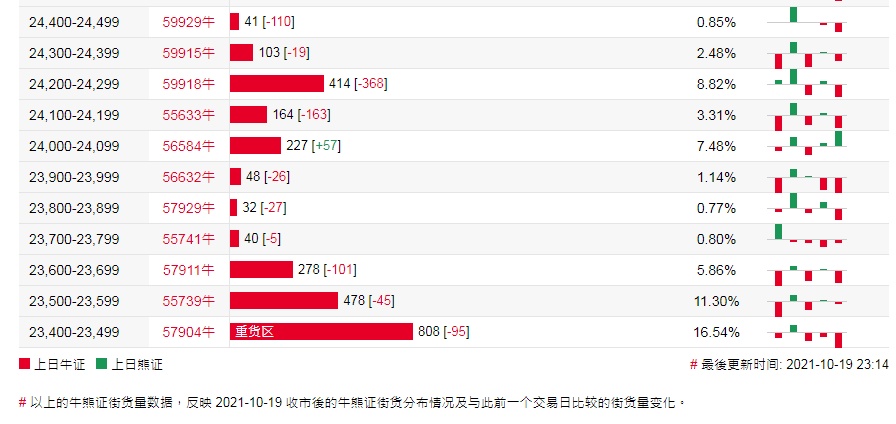 智通财经APP获悉,截至10月20日,恒指最新的牛熊街货比例为54:46。