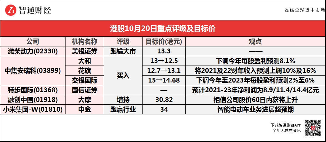 花旗称,将中集安瑞科(03899)2021及2022财年收入预测上调10%及16%,并预计下半年毛利率有所改善。