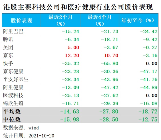 科技股的日子不好过。从头部个股看,年初至10月6日大盘最低点,阿里巴巴-SW(09988)跌幅超过41%,腾讯(00700)跌幅超21%。而互联网医疗板块,阿里健康(00241)跌幅54.6%。