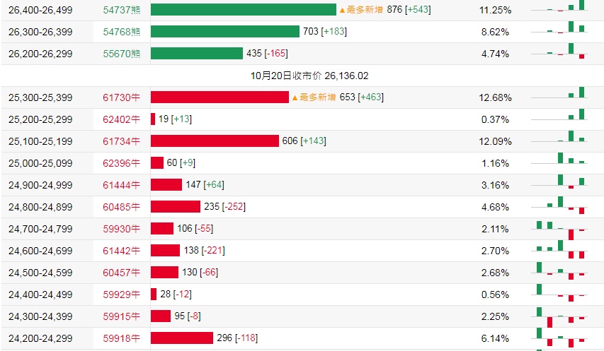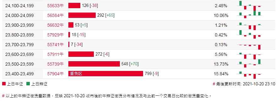 智通财经APP获悉,截至10月21日,恒指最新的牛熊街货比例为50:50。