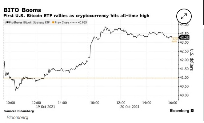 随着比特币达到历史最高水平,这支比特币ETF也走高