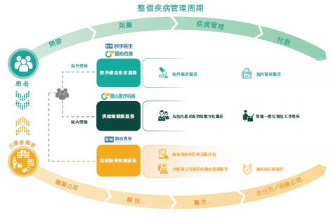 院外综合患者服务将作为圆心科技的发展基础,同时也是用户端的入口,搭配另外两大业务布局,为患者提供全病程的管理。
