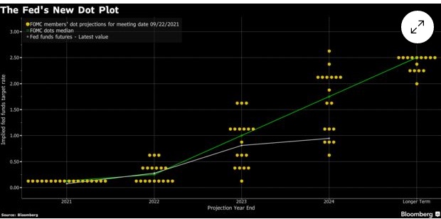 根据9月21日至22日会议的纪要,官员们倾向于最早在下个月开始缩减债券购买规模,并在2022年年中左右结束这一过程。官方为会议提供的预测显示,对于明年是否有必要上调联邦基准利率,他们的看法各不相同。目前联邦基准利率接近于零。