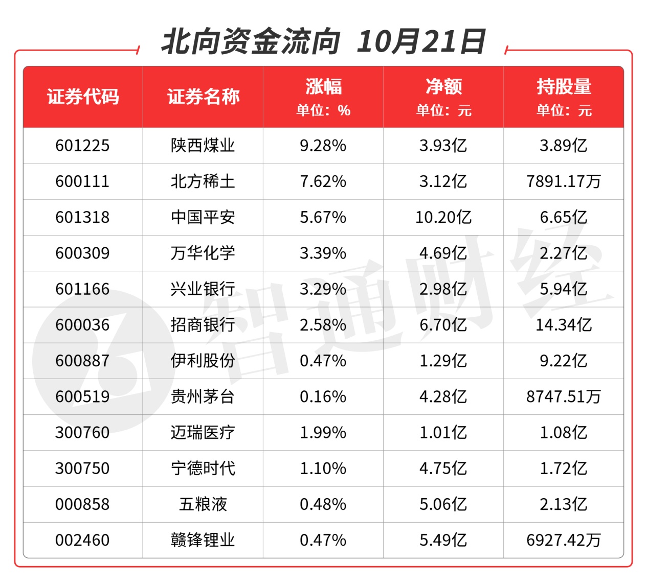 北向资金全天净流入101.54亿元,买入的品种主要集中在煤炭、锂电池、化工、稀土、白酒、银行及保险类。重点品种如下图: