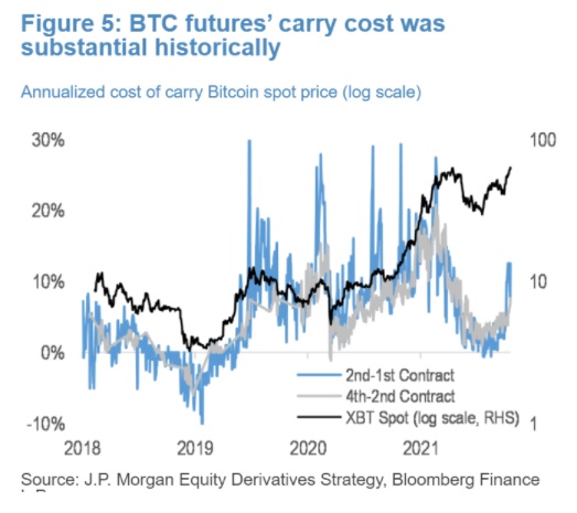 该行总结道,“由于交易所交易产品(ETP)本身对市场的影响,投资者的多头仓位越多,持有成本就越高。”