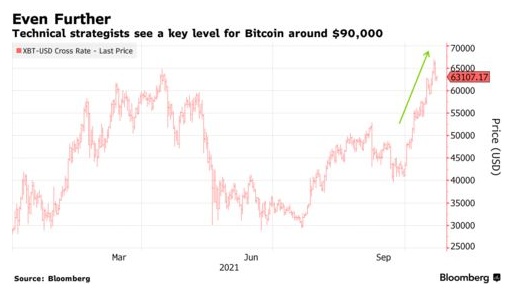 另外,Fairlead Strategies创始人Katie Stockton周一(在比特币创下最新纪录前)也表示,价格突破新高将提供了一个积极的长期趋势,根据衡量的走势预测,比特币的目标价位应为89800美元。