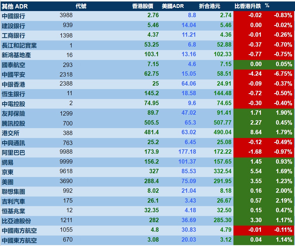 智通财经APP获悉,周五美股三大指数涨跌不一,港股ADR指数上涨,按比例计算,收报26250点,涨123.54点或0.47%。