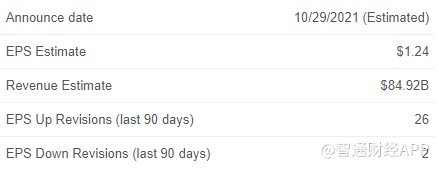 市场预期苹果2021财年第四季度营收为849.2亿美元,同比增长31%;预期Q4每股收益为1.24美元。同比增长70%。