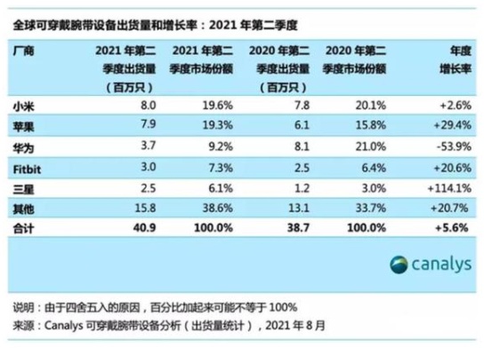 根据数据调研机构Canalys的最新数据,在全球范围内,可穿戴设备市场在今年第二季度总出货量达到4090万台,同比增长5.6%。
