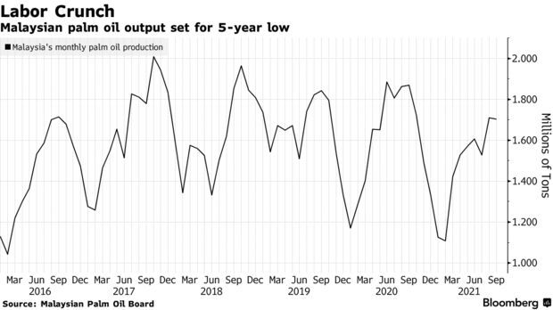 智通财经APP获悉,作为全球第二大棕榈油生产国,由于马来西亚的种植者正在努力应对有史以来最严重的劳动力短缺问题,该国的棕榈油产量或将创下五年来的最低水平,并且低产量可能会持续到明年3月份。