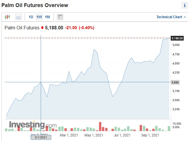 由于天气、疫情导致的生产限制以及全球需求的复苏,棕榈油行业正处于前所未有的时刻。Phillip Future机构销售经理兼经纪人Marcello Cultrera表示:“棕榈油历史性的价格高位以及波动性,使得我们正处于一片未知的领域。”