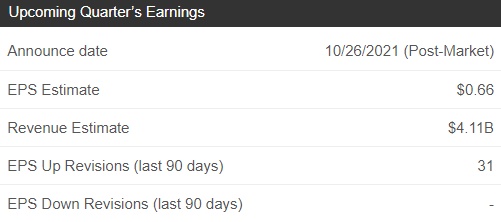 智通财经APP获悉,AMD(AMD.US)将于美东时间10月26日美股盘后(北京时间10月27日早间)公布第三季度业绩。市场预计每股收益为0.66美元,同比增长61.28%;营收为41.1亿美元,同比增长46.85%。
