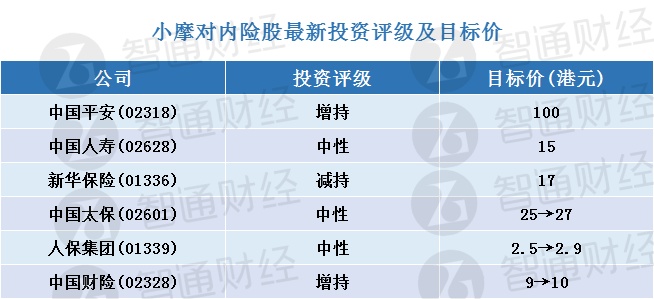 智通财经APP获悉,小摩发布研究报告称,内地寿险板块本年至今表现,致使该行保守预期落空,该行原预期疫情后寿险销售复苏,列中国平安(02318)作为跑赢大市的首选。本年至今股价反映除中国财险(02328)外,其他予“增持”的寿险股均“跑输大市”,特别是平安A/H股。