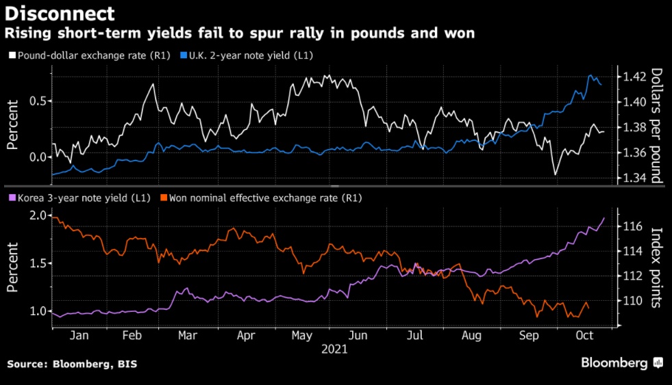 这种担忧在英国尤其严重。交易员预计,英国央行到2022年底将收紧政策,预计利率上调幅度将超过100个基点,这将是本世纪最激进的加息周期。尽管英国正在努力应对英国脱欧带来的严峻经济影响,以及即将进入冬季的新冠肺炎病例的复苏。