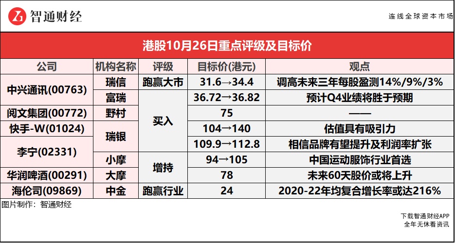 瑞信:予中兴通讯(00763)“跑赢大市”评级 目标价上调至34.4港元
