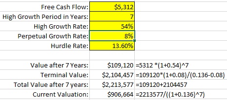 基于这些数字和假设,得出特斯拉目前总市值约为9060亿美元。值得注意的是,作为假设的54%的高增长率与该公司Q3的389%的净利润同比增长率相比,实在是很保守了。