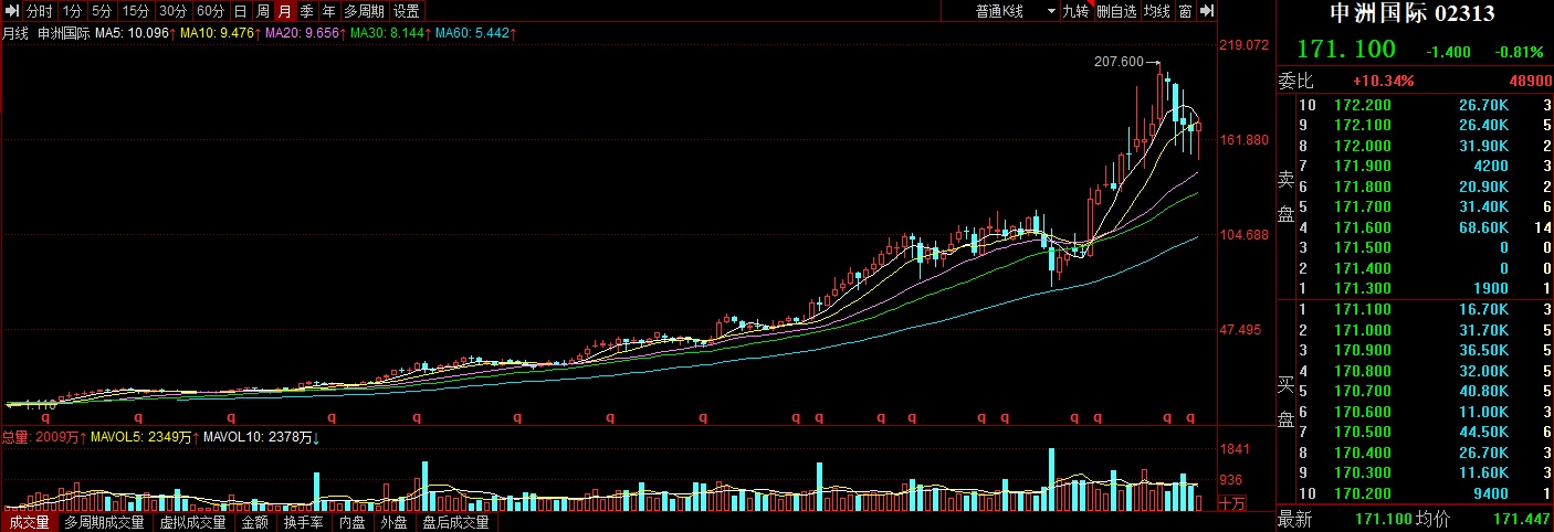 从下游零售商向上回看运动服饰代工企业,不难看出这是一个牛股频出的细分赛道。以申洲国际为例,公司上一次年线收阴需要向前追溯到2014年。股价长牛背后,是公司强劲基本面的支持。