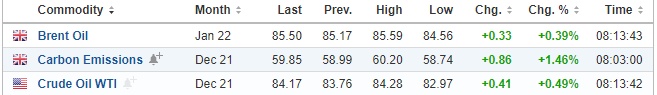 截至发稿,WTI原油涨0.49%,报84.17美元/桶。布伦特原油涨0.39%,报85.50美元/桶。