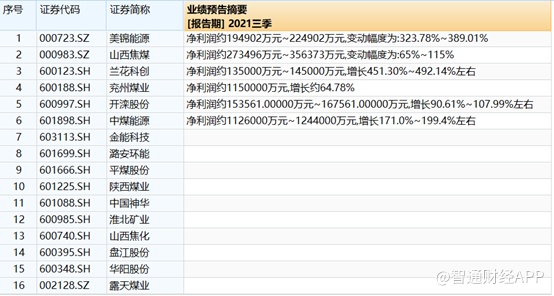除了股价涨上天以外,今年煤炭企业的业绩也十分亮丽。从上市公司发布的业绩预告来看,不少煤炭企业今年业绩也实现翻倍式增长。
