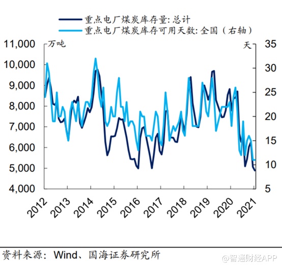 库存方面,根据国家发改委披露数据,8月份全国电厂煤炭库存量已降至4890万吨,为近10年来最低水平。