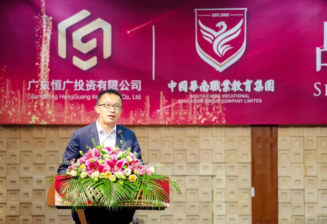 广东恒广投资有限公司总经理朱钢、广州大岭产业投资有限公司总经理刘利彦,中国华南职业教育集团股东代表韩利庆、广东岭南现代技师学院校长黄克明等出席签约仪式,中国华南职业教育集团100多位教职工代表出席并见证签约。