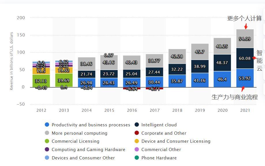 微软该项业绩在全球Iaas+Paas大型云平台中,就同期收入来说,毫无疑问是属于顶级盈利水平。