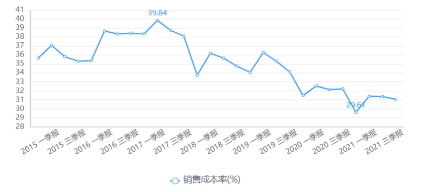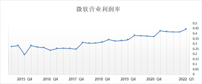 本季度销售成本率为30%,环比持平,从销售成本率走势图能看出微软近几年在成本端下足了功夫,花最少的钱创造最大的价值。
