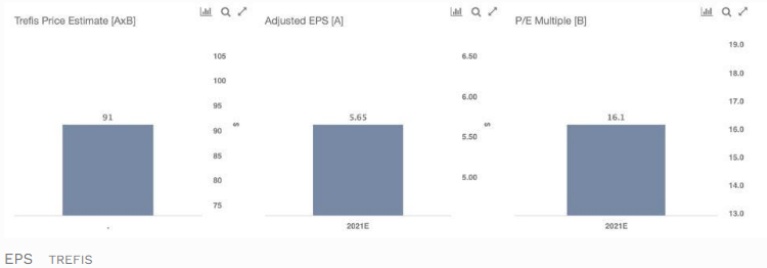 根据Trefis对联合健康的估值分析,以2021年每股收益预期为5.65美元,市盈率为16倍计算,该股股价预计为91美元,较上周五收盘价约81美元的市场价格高出近12%。