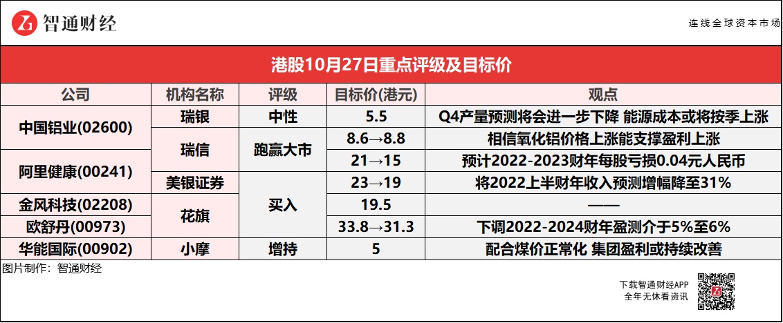 美银证券将阿里健康(00241)2022上半财年收入预测下调至94亿元人民币,增幅由早前的39%降至31%,目标价从23港元降至19港元。