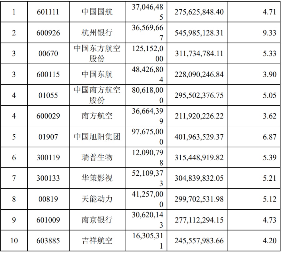 公告显示,该基金的重仓股包括中国国航(00753,601111.SH),杭州银行(600926.SH),中国东方航空(00670,600115.SH),中国南方航空股份(01055)等个股,另外有三只个股新进前十大重仓股行列,分别是华策影视(300133.SZ)、南京银行(601009.SH)、吉祥航空(603885.SH)。