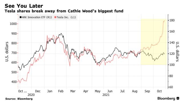 此外,在电动汽车制造商特斯拉(TSLA.US)今年股价飙升47%之际,ARKK在过去几个月一直在抛售该公司股票,这也可能在一定程度影响了该基金表现。
