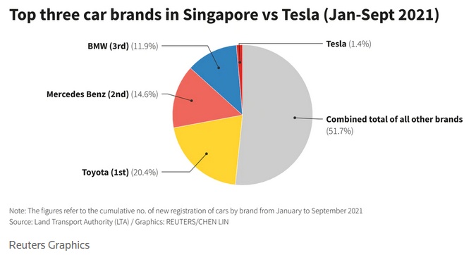 除了在股票市场上春风得意之外,特斯拉还在新加坡汽车市场上斩获颇丰。