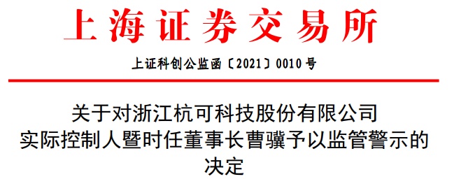 智通财经APP获悉,10月28日,上交所发布关于对杭可科技(688006.SH)实际控制人暨时任董事长曹骥予以监管警示的决定。经查,2021年9月28日,杭可科技披露《关于公司董事、高级管理人员亲属短线交易及致歉的公告》称,曹骥的配偶孔海萍于2021年1月12日至2021年9月16日期间多次买卖公司股票。公司时任董事长曹骥的配偶所持有的公司股票在6个月内被买入又卖出的行为,构成短线交易的违规行为。