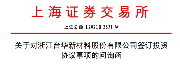 智通财经APP获悉,10月28日,上交所发布关于对台华新材(603055.SH)签订投资协议事项的问询函。问询函指出:2021年10月28日,台华新材披露公告称,与淮安市洪泽区人民政府签署投资协议书,拟以总投资不低于120亿元建设绿色多功能锦纶新材料一体化项目,项目分四期建设。截至2021年上半年末,公司账面货币资金4.11亿元。项目投资金额可能超出公司目前资金实力。上交所要求公司补充披露“项目资金的具体来源、支付方式、支付安排,项目资金来源是否存在较大不确定性,本次投资是否将较大程度上增加公司财务负担,以及对公司现金流的具体影响”等事项。