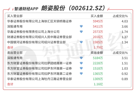 朗姿股份(002612.SZ):龙虎榜阵容强大,深股通对倒当日买卖均衡,买三是知名游资的席位买入2573万元,买五是知名游资赵老哥的席位买入1985万元,当日净买入9665万元,该股调整充分,今日强势涨停,短期压力在半年线附近。