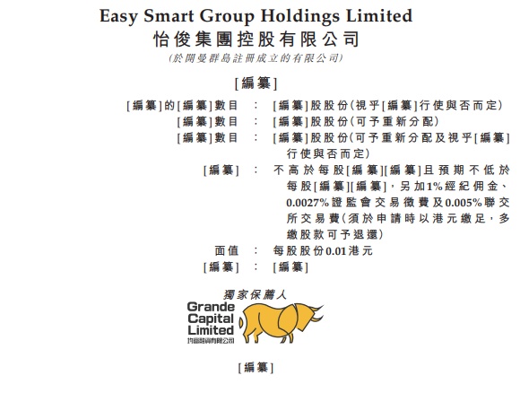 智通财经APP获悉,据港交所10月29日披露,怡俊集团控股有限公司(Easy Smart Group Holdings Limited)向港交所主板递交上市申请,Grande Capital Limited为其独家保荐人。